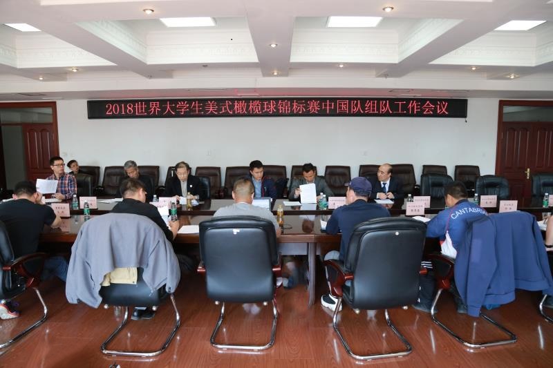 继2018世界大学生美式橄榄球锦标赛组委会成立大会暨倒计时60天启动仪式之后,中国队组队工作会议于2018年4月16日下午在我校行政楼三楼会议室召开。