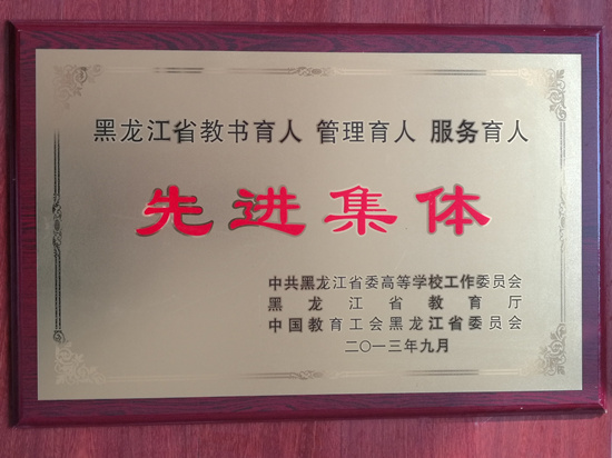 时间:2013年9月,荣誉:黑龙江省三育人先进集体