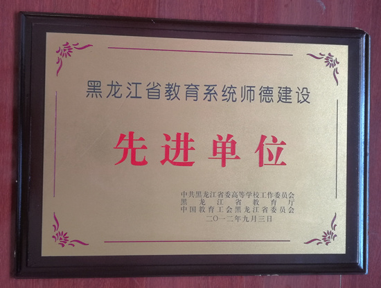 时间:2012年9月,荣誉:黑龙江省教育系统师德建设先进单位