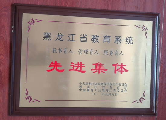 时间:2011年9月,荣誉:黑龙江省三育人先进集体