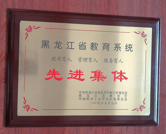 时间:2009年9月,荣誉:黑龙江省三育人先进集体