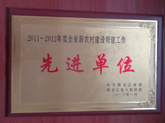 时间:2013年1月,荣誉:2011-2012年度全省新农村建设帮建工作先进单位