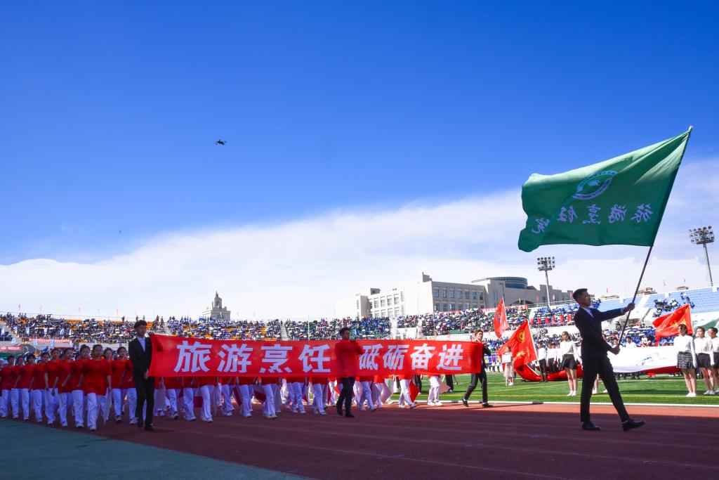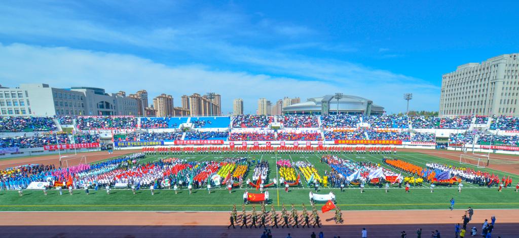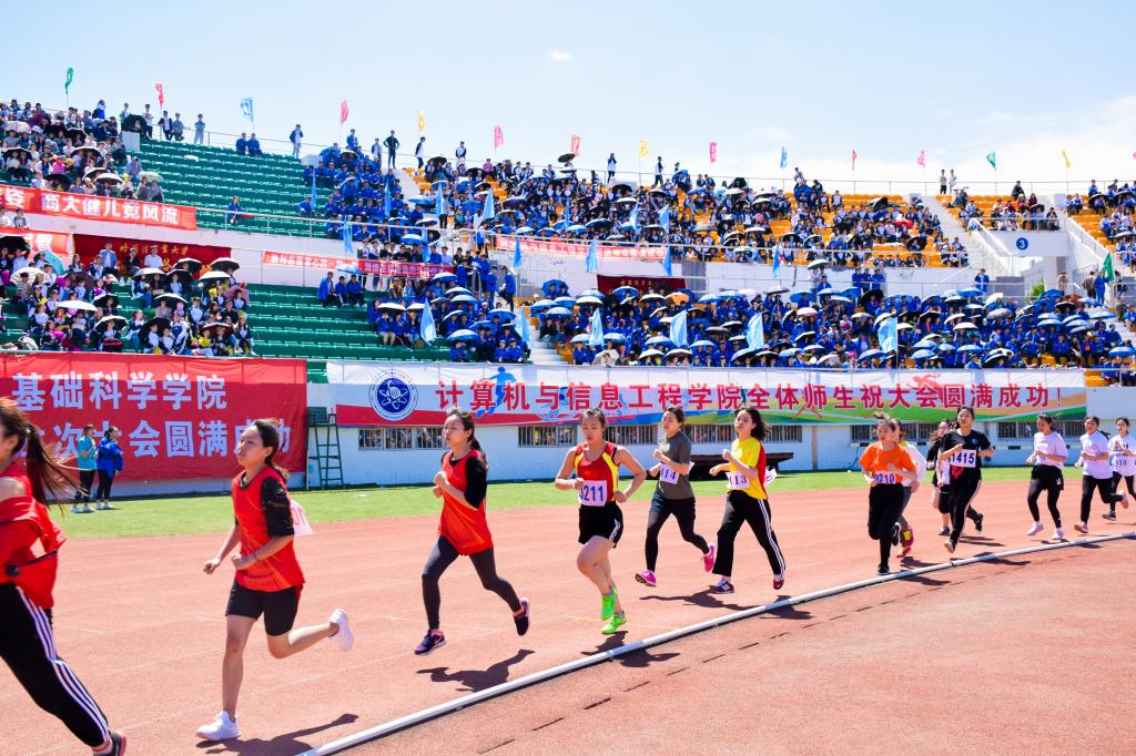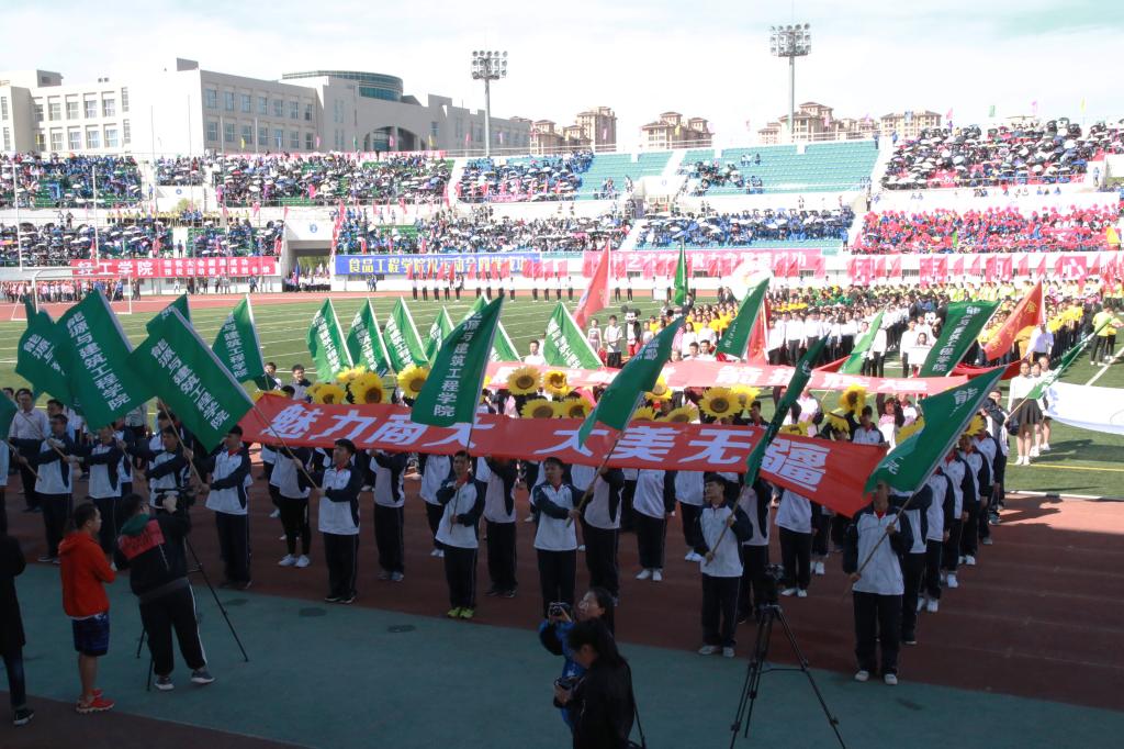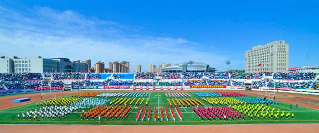 激情五月,花满商大,青春与自信齐飞,汗水与斗志并行。5月25日8:30,哈尔滨商业大学第44届阳光体育运动会如期开幕。体育场内座无虚席,夏日的热情在这里被点看台四周彩旗招展,花团锦簇,2万多名师生沉浸在欢乐祥和、激情飞跃的海洋里。