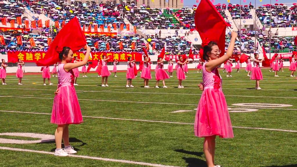 大型团体舞蹈《五星红旗我爱你》展现了商大学生对祖国母亲的深情热爱,体现了广大学生满满的青春风采,激活了广大学生的运动生命力。