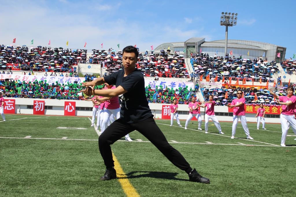 戏曲广播体操表演将戏曲和现代广播体操相结合,诠释着商大教师的精、气、神。