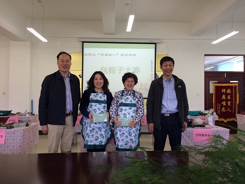 校工会副主席周鸿武、刘立峰参加了包粽子决赛并担任评委。