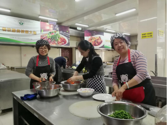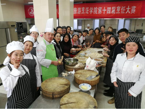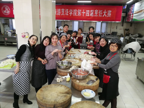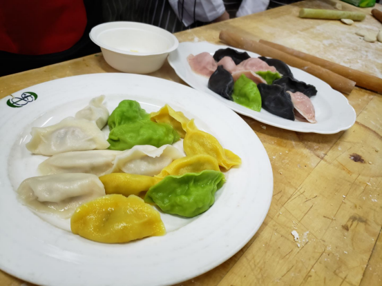 白案上的饺子,或如月牙,小巧玲珑,精致美观;或如元宝,体态丰满,“货真价实”。红案上的菜品,红绿相间,香气扑鼻。烹饪教研室老师、国家级烹饪大师魏志春为师生展示了高超的刀功,精心制作了外酥里嫰、酸甜可口的“糖醋茄子龙”。魏老师还带来了精心准备的五色面坯和饺馅,师生一起包出寓意“五福”和团圆的五彩饺子,畅想和祝愿工作、学习和生活的美好未来。