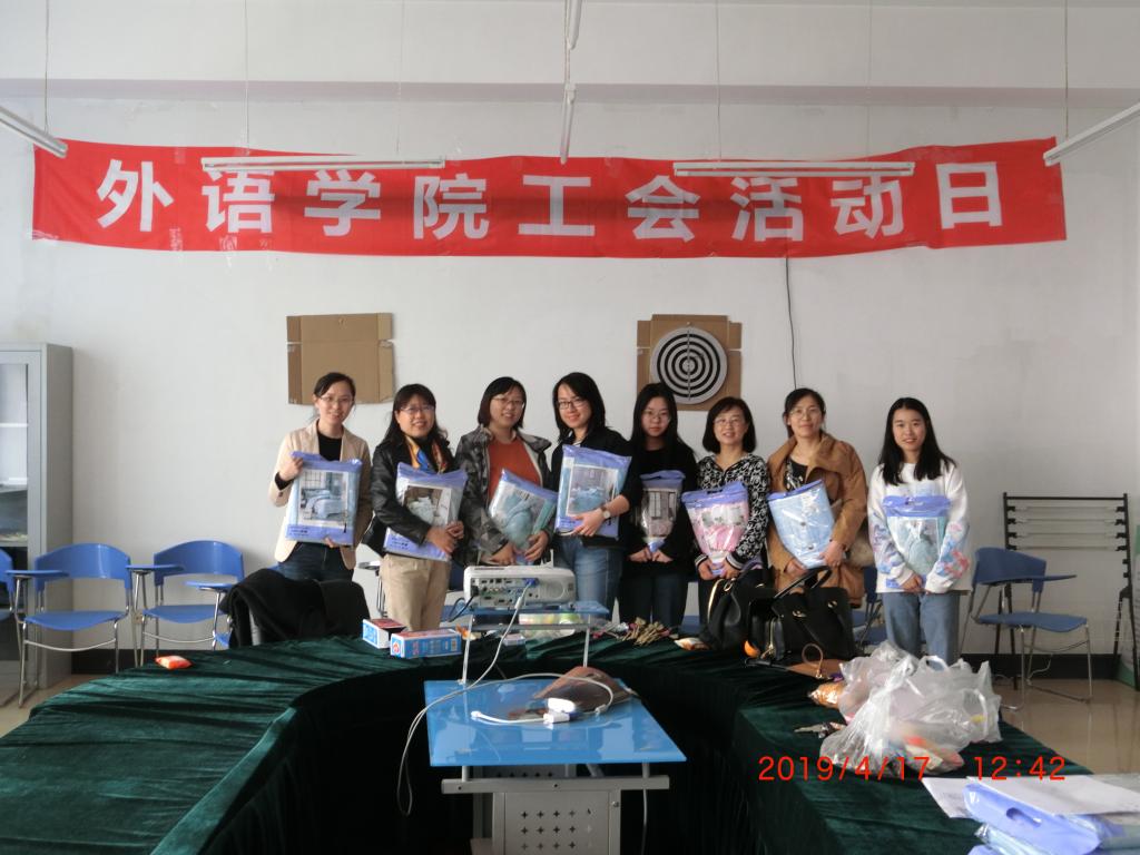 为了缓解教师的工作压力,提高教师的身体素质,增强工作效率,丰富广大教职工的业余文化生活,营造积极健康向上的校园文化氛围,提升教师工作的幸福指数,外语学院分工会于4月17日12:00在主楼0505开展工会活动。