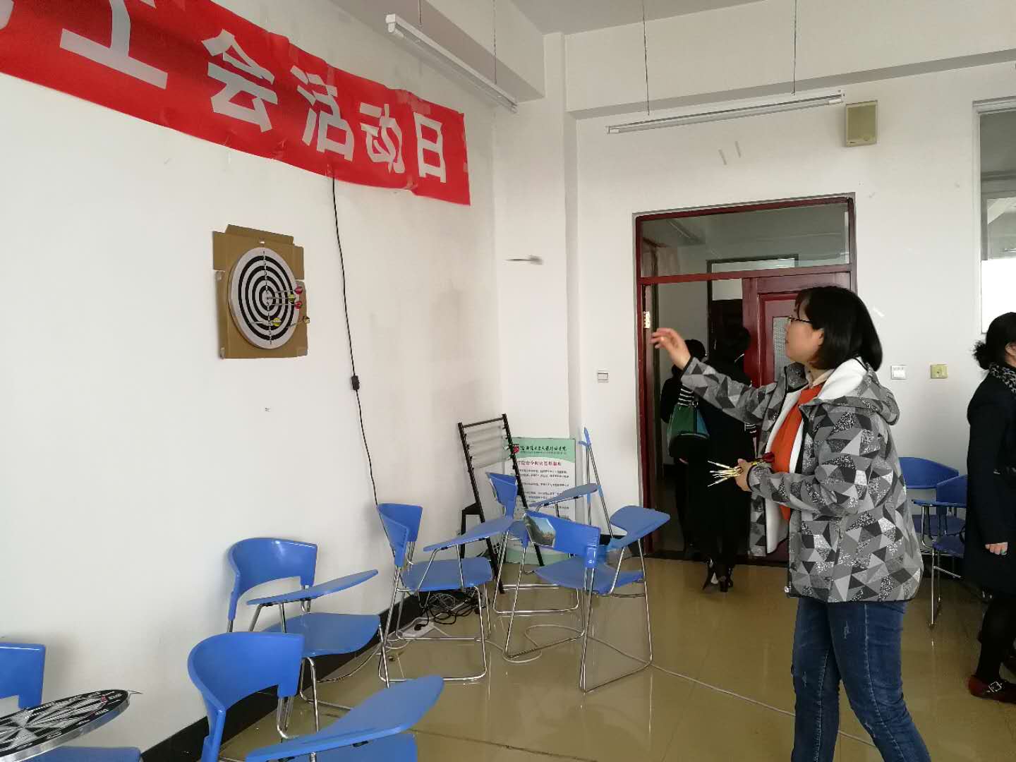 活动丰富多彩、精彩纷呈,主持人将所有青年教职工分为四个小组进行比赛,青年教师们积极踊跃地参与“飞镖比赛”、“跳棋比赛”、“棋牌竞赛”等形式,比赛采取抽签对阵形式,分预赛、决赛两个阶段进行,整个比赛过程始终洋溢着紧张、和谐、愉悦的氛围。象棋比赛双方,运筹帷幄,调兵遣将,跳棋暗渡陈仓、曲线救国。扑克比赛双方更是精诚团结,配合作战,选手们全身心地投入比赛,现场不时爆发出欢呼声,气氛非常热烈。在自由活动中,教师职工们有的聚在一起聊天,开茶话会;有的则继续进行棋牌比赛,切磋技艺,0505会议室呈现一片其乐融融的景象。