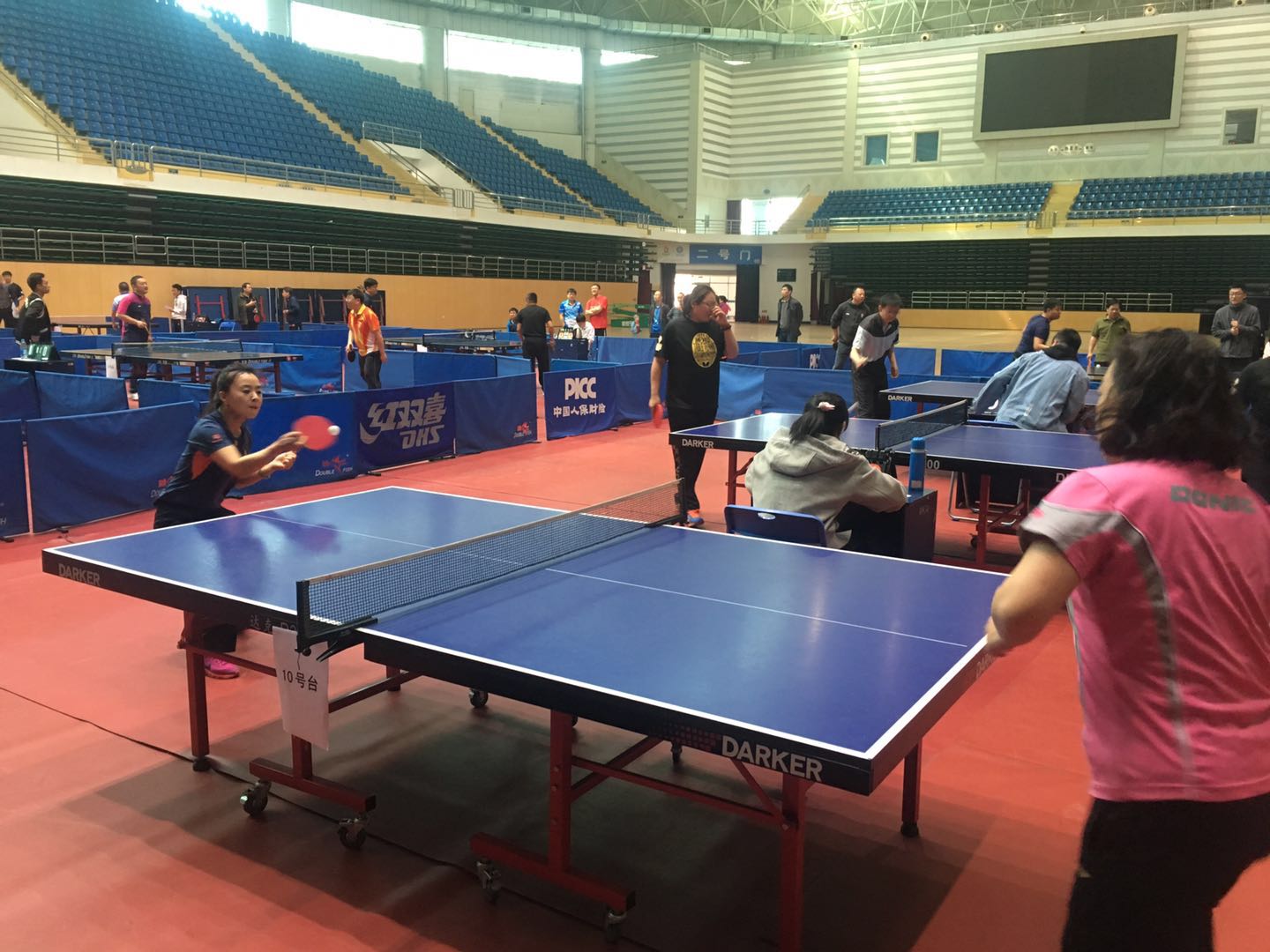 经过1天紧张激烈的角逐,2019年学校教职工乒乓球比赛于4月21日在A区体育馆圆满结束。本次比赛有男女共15支代表队70余人参赛,比赛设立了男子团体、女子团体、男子单打、女子单打和混双五个项目。此次比赛,丰富了教职工的业余文化生活,充分展示了我校教职工积极、健康、向上的精神风貌,增强了教职工的集体荣誉感和团队协作精神。本次比赛得到了校工会和体育学院的大力支持,比赛具体成绩如下: