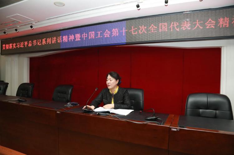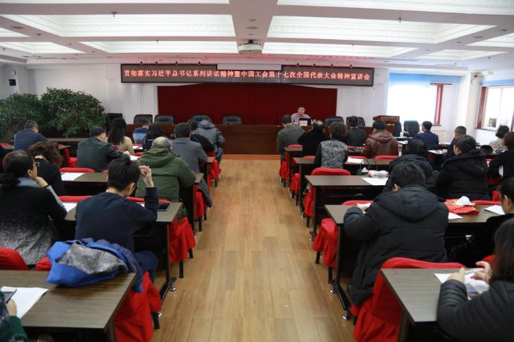 12月13日下午,校工会在行政楼612会议室举办贯彻落实习近平总书记系列讲话暨中国工会第十七次全国代表大会精神宣讲会。校工会主席李晓梅、各分工会主席及工会委员近百人参加会议。会议由校工会常务副主席周鸿武主持。