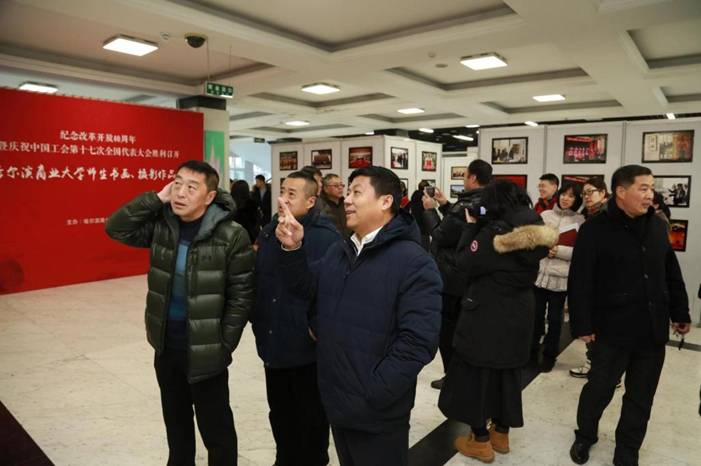 为庆祝改革开放40周年,促进校园文化和精神文明建设,进一步激励广大教职员工爱岗敬业、奋发有为,以良好的精神风貌推进学校全面加速发展,12月3日,我校纪念改革开放四十周年暨庆祝中国工会十七大胜利召开师生书画摄影展开展,学校领导、机关干部和师生参观了书画摄影展。