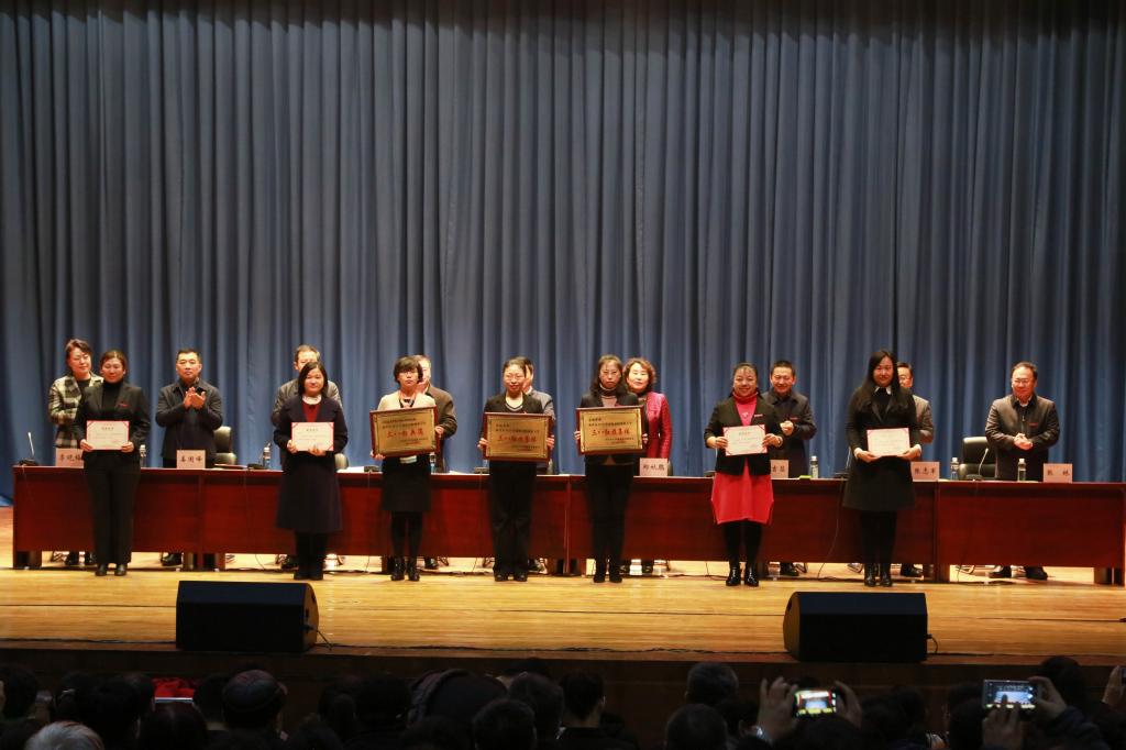 工会主席李晓梅宣读《关于表彰2018年度校“三八红旗集体”和“杰出巾帼工作者”的决定》