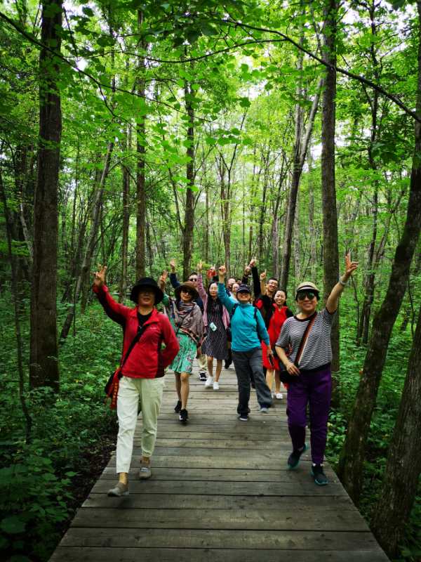 疗休养期间,校工会组织教职工们参观了回龙湾国家森林公园。盛夏的伊春,林海浩瀚,重峦叠嶂。大家一边欣赏着眼前的美景,一边感叹着大自然的鬼斧神工。在爬山活动中,大家结伴而行,遇到坡陡路滑的情况友爱搀扶,互相鼓励,在“林都”结下了深厚的友谊。校工会邀请体育学院张继春老师以示范教学的方式为大家讲解科学的健身方法,并带领大家一起学习太极拳《八段锦》。校工会还组织开展了联欢会等集体活动,教职工积极参加游泳、健身、棋牌等休闲娱乐活动。