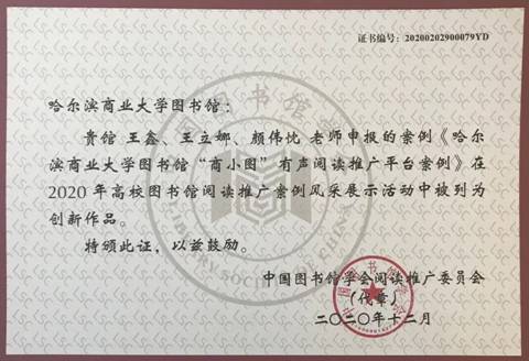 积极参与风采展示活动,不断提升服务能力和业务水平。在2020年高校图书馆阅读推广案例风采展示活动中,我校图书馆选送的“商小图”有声阅读推广平台案例荣获本次案例大赛创新案例奖。优秀的阅读推广活动不仅能够吸引广大师生走进图书馆,还能有效提升了图书馆的服务效能和业务水平。此外,在2020年校内新媒体评选活动中,“商小图”荣获“校园十佳新媒体”称号。