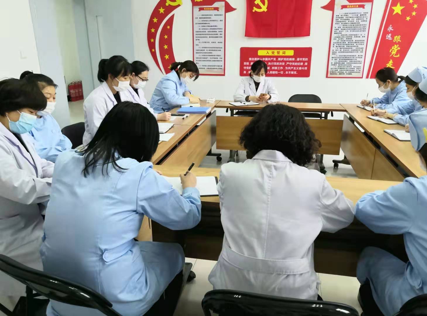 校医院在刘艳荣同志的带领下,成为一个有着优秀传统的集体,曾多次荣获“三八标兵岗”、“先进集体”等光荣称号。所有医护人员积极报名,参加防控疫情工作,以岗为荣,不忘初心,身体力行,始终坚守并战斗在抗疫第一线,用他们的行动筑起学校安全、师生健康的钢铁长城。